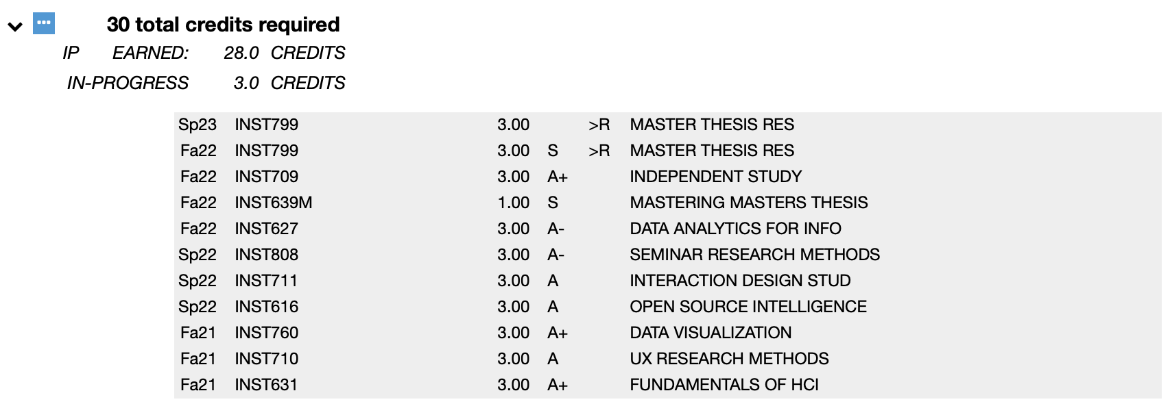 - Interviewed the Director of Undergraduate Operations among others to learn more about the Advising Process at UMD